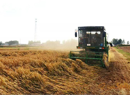 • 拖拉機(jī)和收割機(jī)在農(nóng)場收大米